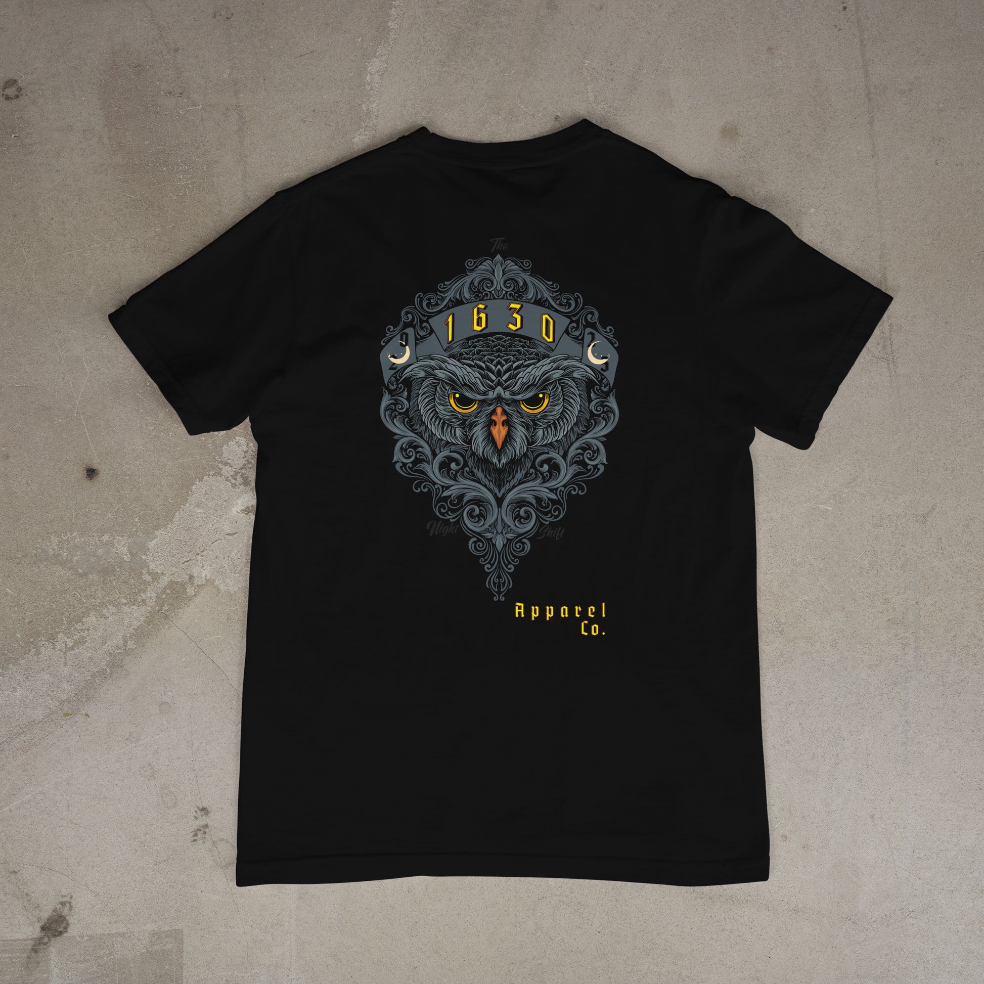 Introducing the boldest take yet on 1630’s iconic night shift owl logo. Crafted from tough 100% heavyweight preshrunk cotton jersey at 10.5oz, this piece is built to last with double-needle topstitching on the collar, cuffs, and hem, plus reinforced taped neck and shoulder seams. Its unisex design offers a fearless fit for those who dare to make a statement and stand apart from the crowd.